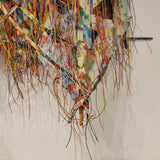 An abstract, fiber-art wall sculpture of sticks, pigment, acrylic on paper, and thread by listed American artist Boris Fedushin (b. 1937), measuring approximately 6.0 x 6.5'. Untitled and unsigned. Provenance: estate of Arnold Scaasi (1930-2016), the legendary NYC-based couturier, renowned for glamorous, colorful gowns and a high-society clientele that included four First Ladies, movie stars, and socialites. Together with husband Parker Ladd, Scaasi famously entertained the famous and assembled an enviable collection of fine art, European antiques, and world artifacts.