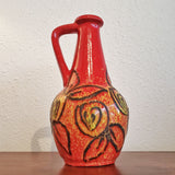 A fiery red, yellow, and black handle vase Nr. 61/30 from Bay Keramik with a raised volcanic floral or fruit decor, and an eye-catching form.